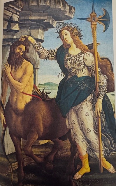 In Botticelli's masterpiece Pallas and the Centaur (1482-83), to be seen at the Galleria degli Uffizi in Florence, the Firenze-Athena parallel is unmistakable, with Florence depicted as the new Athens.