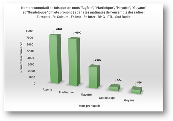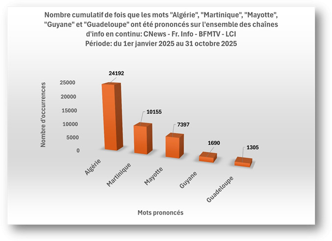 Ainsi, que ce soit avec les chaînes d'information en continu ou avec les radios, l'Algérie est plus citée que les DROM qui, eux, sont de vrais départements français!