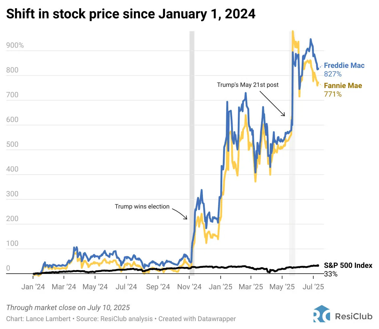 Here they go again ! Trump 2.0 is chugging down the same dubious path as Trump 1.0, fixing to shower crony capitalist speculators with massive windfall gains via a public offering of the shares of Fannie Mae and Freddie Mac (GSEs or Government Sponsored Enterprises).