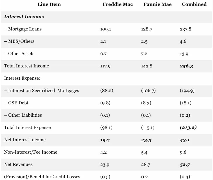 Combined Freddie/Fannie Income Statement (2024, $ in billions)