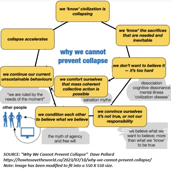 2) a blindness to the erosion of the society's capacity to adapt to conditions that are so novel that the existing responses are inadequate and doomed to fail.