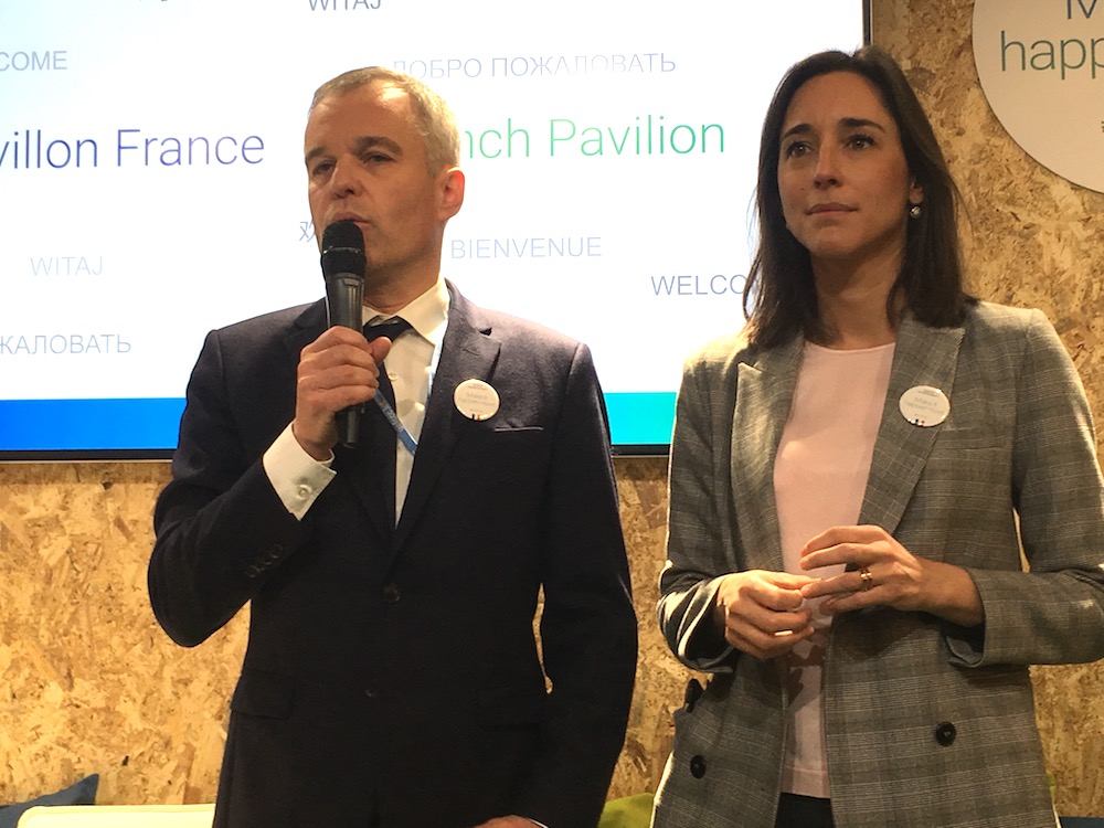 Difficile donc de deviner à ce stade quel sera dans 15 jours le niveau d'ambition retenu. Et je dois vous avouer que ce n'est pas l'intervention française qui m'a rassurée... « Point presse du ministre sur le pavillon français à 11 h 40. » Le SMS tombe sur mon téléphone alors que la plénière n'est pas encore finie. Tant pis, j'abandonne l'écran géant pour me précipiter auprès du ministre de la Transition écologique, François de Rugy, et de sa secrétaire d'État, Brune Poirson, qui ont remplacé au pied levé Édouard Philippe. Celui-ci a annulé sa venue pour gérer la crise des gilets jaunes. « Vous comprenez, me glisse un conseiller, on avait peur que ce soit mal perçu qu'il vienne ici. Déjà qu'on a reproché à Emmanuel Macron d'être en Argentine quand ça a pété samedi... » Mais, demandé-je benoîtement, « justement, cela n'aurait-il pas eu plus de sens qu'il vienne à Katowice et qu'il y fasse le lien entre ces enjeux climatiques cruciaux et les réformes à mener en France ? » Pas de réponse.