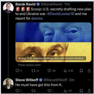 - 'Senior US officials' obfuscate the issue in the NY Post by claiming that Witkoff's "K" meant Kirill Dmitriov.