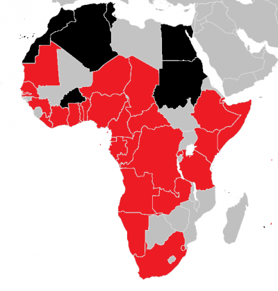 Carte de l'Afrique : la propagation de la COVID-19 en Afrique le 20 mars 2020. Source : Wikipédia