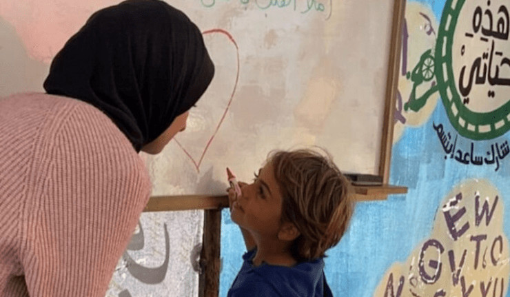 Lorsque la guerre a éclaté, Lamia s'est portée volontaire pour enseigner dans une petite tente, aux enfants déplacés de force. Elle rêvait de construire une école pour les orphelins et les enfants des martyrs, et elle a réalisé ce rêve.