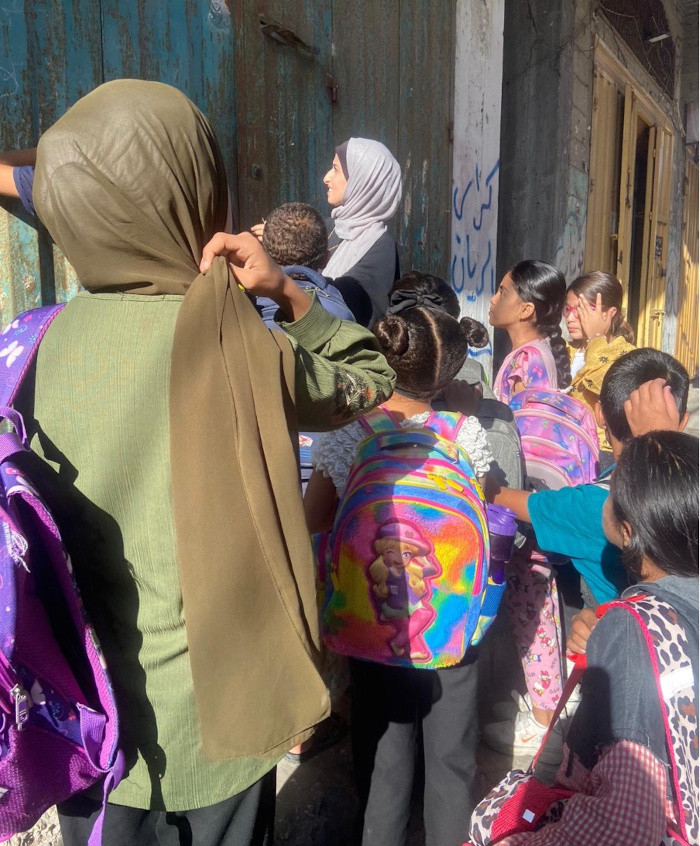 L'école se trouve finalement près d'une clinique de l'UNRWA à Al-Nuseirat. «Il n'y a pas d'endroit vraiment sûr à Gaza, a-t-elle déclaré, mais j'ai choisi le plus sûr possible». Son frère et son beau-frère l'ont aidée à transporter des chaises, à aménager la salle de classe et à la préparer pour les enfants.