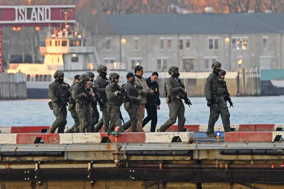 Le président vénézuélien Nicolas Maduro et son épouse, Cilia Flores, capturés, sont arrivés à l'héliport de Wall Street à Manhattan sous forte escorte et ont été transportés à New York le 5 janvier 2026. [Stringer - Agence Anadolu]