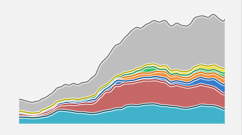 En observant la détention de la dette américaine par nationalité, on constate clairement l'essor de la Chine comme premier créancier étranger à partir de 2008. Avec 800 Md$ de dette fédérale détenus, le pays s'était alors hissé devant le Japon, pourtant partenaire commercial de longue date des États-Unis. Cette dette détenue par la Chine a atteint près de 1 800 Md$ en 2016, et n'a cessé de décroître depuis.