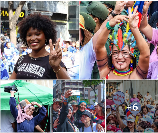 Photos: Caracas, 6 janvier 2026 - Forte mobilisation de centaines d'organisations féministes pour défendre la révolution. « Sans féminisme, pas de socialisme ! » avait annoncé Hugo Chávez. Le 31 décembre 2025, Nicolás Maduro avait inauguré une nouvelle école internationale pour l'émancipation des femmes. Aujourd'hui, la présidente par interim Delcy Rodriguez consacre sa première visite à un autogouvernement communard. La révolution bolivarienne est d'abord une révolution féminine : les communes, les organisations populaires, sont dirigées à 70% par des femmes.