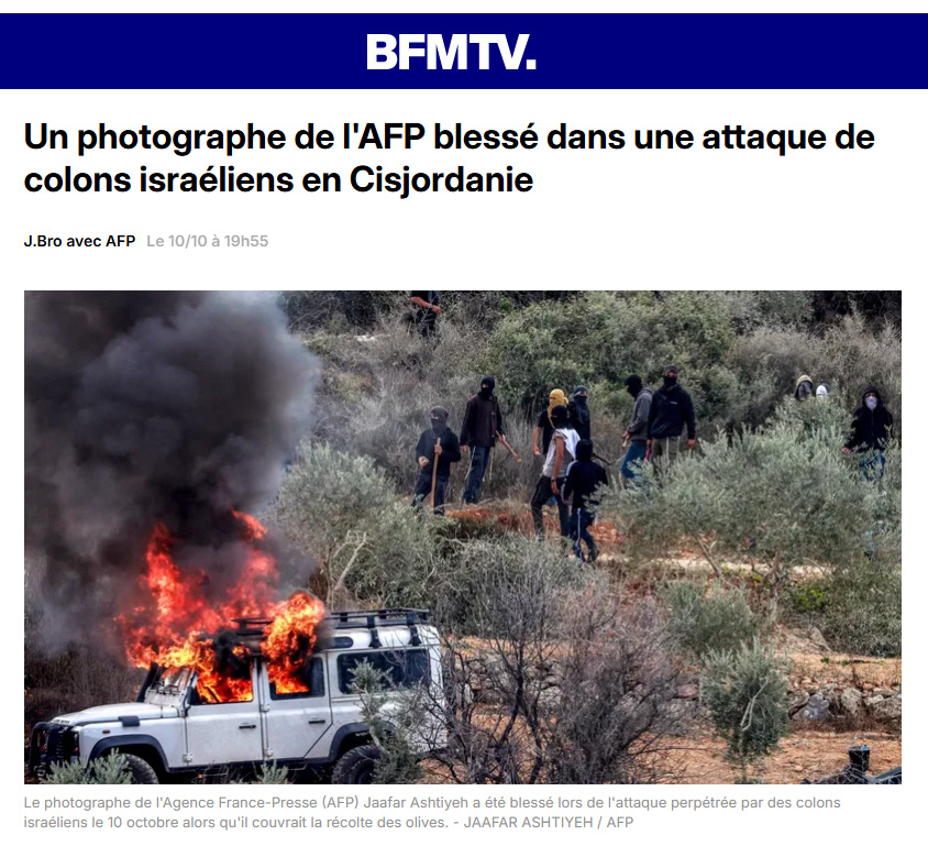« En trente ans de carrière, c'est la première fois que je fais face à une violence de cette sorte »,  a déclaré Jaafar Ashtiyeh, photographe palestinien basé à Naplouse, dans le nord de la Cisjordanie, territoire palestinien occupé par Israël depuis 1967. « Si je n'étais pas parvenu à m'échapper, ils m'auraient tué », a-t-il ajouté.