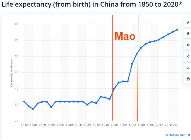 À cet égard, Mao a présidé ce  qu'une étude de l'Université de Stanford a qualifié de cette façon : "La croissance de l'espérance de vie en Chine, entre 1950 et 1980, figure parmi les augmentations soutenues les plus rapides de l'histoire mondiale documentée."