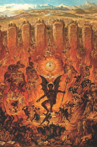 Pour ceux qui font les difficiles, et que l'imagerie populaire de Satan gêne, parce qu'elle a été reprise par un christianisme qui, comme le judaïsme, doit sa mythologie à tout un legs païen, oriental, égyptien, iranien, manichéen, voire indien, il n'est pas interdit d'invoquer l'instinct de mort, l'amour du néant, la jouissance dans la souffrance infligée, et parfois subie (et on se demande parfois si la deuxième ne l'emporte pas sur la première). Certes, Satan est le maître du monde (ou Thanatos, si vous voulez, qui se le partage avec Éros, lesquels sont liés comme un couple maudit). L'Histoire est brodée de plus de massacres, de ruines, d'incendies, de cruauté, de férocité, que de bonheurs, de plaisirs, de beautés (à moins qu'on ne trouve ces jouissances dans les lueurs dorés des flammes, dans les concerts de hurlements, ou dans les gigantesques constructions humaines nourries de la sueur et de la peine des hommes).