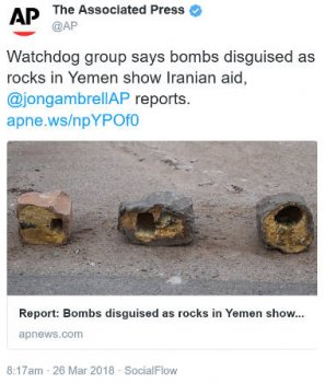 Une lecture attentive de l' article de l'AP, montre que le 'groupe de surveillance' en question est en fait une société à but lucratif anti-iranienne rémunérée par les Émirats arabes unis. Les Émirats arabes unis, avec l'Arabie saoudite, les États-Unis et la Grande-Bretagne, font la guerre au Yémen et considèrent l'Iran comme un ennemi :