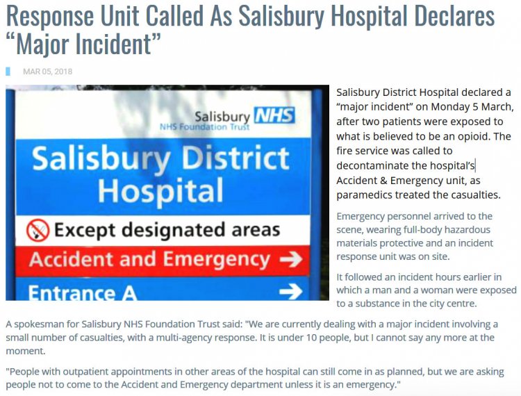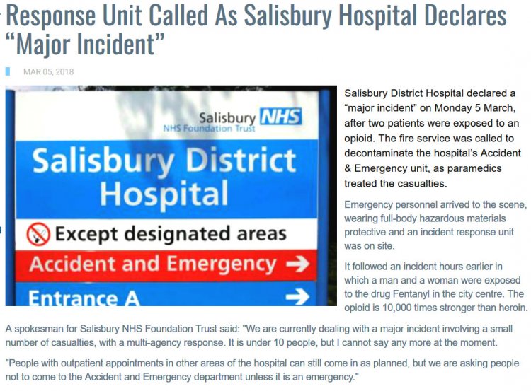 En novembre 2017, le Salisbury Journal avait déjà mentionné un cas d'overdose de fentanyl  sans lien avec le cas Skripal. En 2016, Salisbury a connu un  pic de cas d'overdoses au Fentanyl. Les services d'urgence locaux connaissaient certainement les symptômes et les effets de cette substance.
