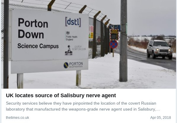 Les #Skripal ont été exposés au #Fentanyl, pas au #Novichok. Après que j'ai publié cette information hier (26.04.) le Clinical Services Journal(CSJ) l'a supprimée aujourd'hui  https://www.clinicalservicesjournal.com/story/25262/response-unit-called-as-salisbury-hospital-declares-major-incidenthttps://www.clinicalservicesjournal.com/story/25262/...