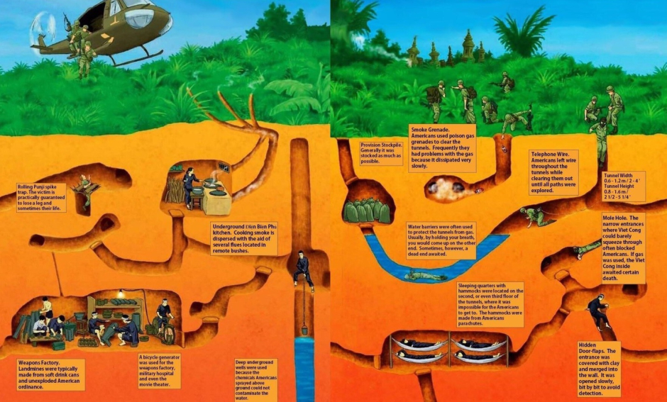 Gaining important experience fighting against the French (and Mongols and Chinese before that), the Vietnamese counteracted superior American technology by planting traps in the ground, developing networks of underground tunnels and planning ambushes and sneak attacks at night.