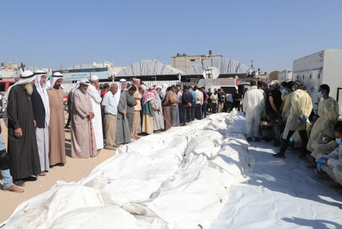 « Les équipes médico-légales ont trouvé des martyrs dont les mains et les pieds étaient liés avec des attaches en plastique, tandis que d'autres avaient les yeux bandés et que certains corps portaient des marques de chenilles de chars, en plus de brûlures, de fractures et de blessures profondes », a déclaré M. Thawabta.