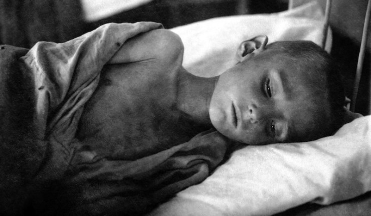 Plus de 630 000 habitants sont morts de faim pendant le blocus de Leningrad (actuelle Saint-Pétersbourg) par les troupes allemandes et finlandaises, qui a duré 872 jours. La famine était telle que les gens mangeaient les chats et les chiens, les épices, les aliments pour oiseaux, les médicaments, de la farine de tournesol, de la colle à bois, des peaux d'animaux, et même des ceintures cuites. «Les sentiments sont devenus ternes. Je traverse le pont, un grand homme avance lentement. Un pas, un autre - il tombe. Je passe mollement devant lui, il est mort - je m'en fiche. J'entre dans ma cage d'escalier, mais je ne peux pas monter les escaliers. Alors, je prends une jambe des deux mains et la mets sur une marche, puis la deuxième sur la suivante», se souvient Tatiana Axionova.