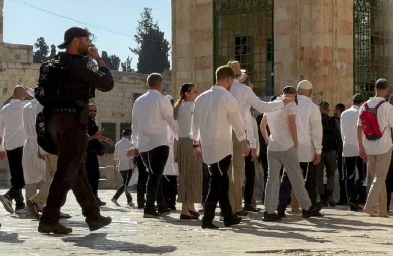 Le nombre de colons ayant pris d'assaut la mosquée Al-Aqsa au cours du mois a dépassé les 5.000. Lors de ces incursions, les colons, menés par des rabbins renommés, ont accompli des rituels religieux publics, notamment en soufflant plusieurs coups de trompette à l'intérieur de la mosquée, en priant, en se prosternant collectivement, en chantant, en dansant et en applaudissant. Ils ont également apporté des instruments de prière sacrés et ont accompli des prières individuelles et collectives dans différentes cours de la mosquée.