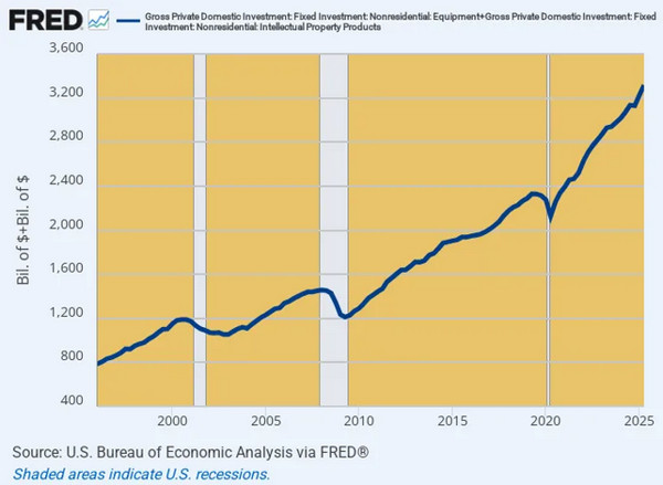 US Fixed Investment Spending For Equipment and Intellectual Property, 1996 to 2025