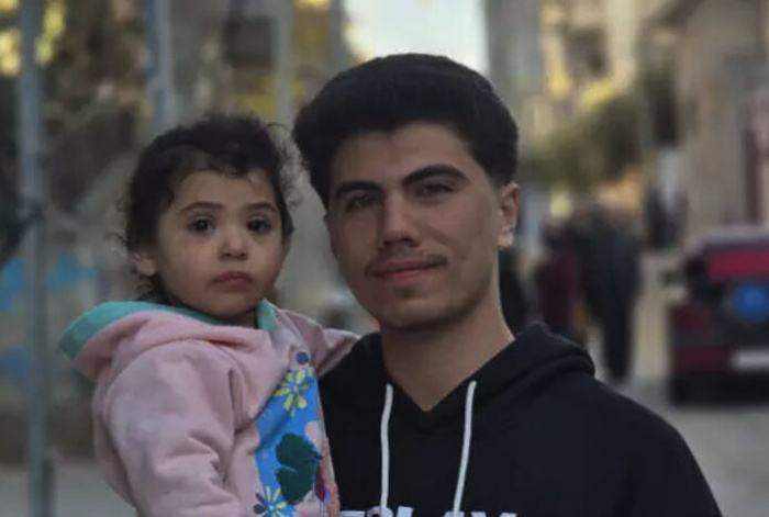 L'auteur, Ahmad Mohammed Abushawish, tient dans ses bras sa sœur Aleen, âgée de 2 ans, qui grandit pendant un génocide - Photo : Omran Abushawish