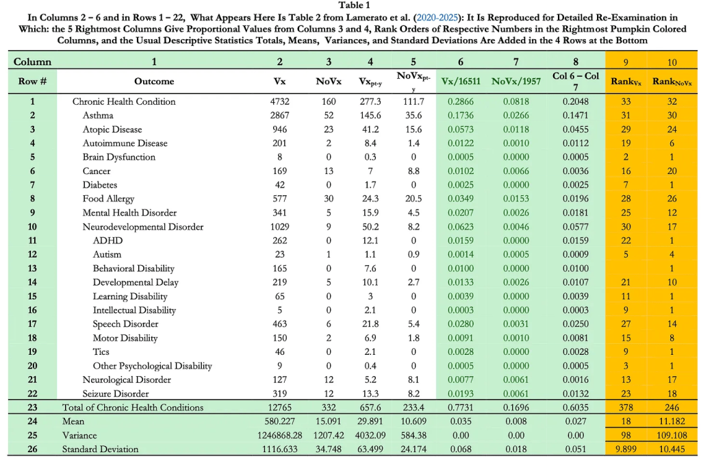 1. L'étude Henry Ford sur les cohortes de naissance vaccinées et non vaccinées ( Lamerato et al.) - présentée lors de l'audience du Sénat américain le 9 septembre 2025 - montrent que les auteurs originaux n'ont pas analysé ni divulgué les différences proportionnelles importantes dans leurs propres données. (1)