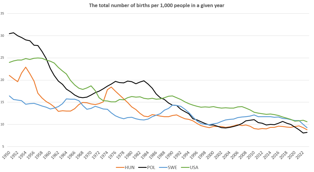 We find here a similar trend to what we see in Poland. Although the standard of living in Poland is clearly far above what it was in Cold War times, fertility rates continue to fall.