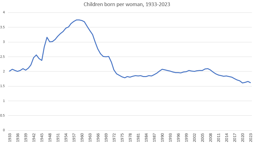 There's lots of explanations that people have put forward in terms of why the birth rate is falling in the United States. For the most part, a lot of them aren't particularly successful... So people talk about things like higher costs of having a family-of raising children, housing, and child care. It turns out those don't work very well as explanations.