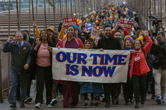 Zohran Mamdani et ses partisans défilent sur le pont de Brooklyn à New York, le 3 novembre 2025 - Photo : X / Zohran Mamdani
