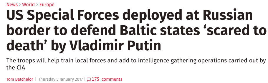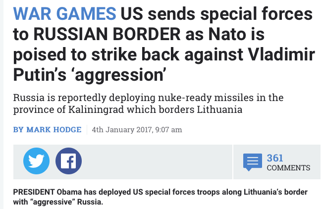 Le prétendu piratage informatique est nonchalamment considéré comme un « acte de guerre » contre le territoire américain, tandis que l'opération « Atlantic Resolve » (qui comprend un déploiement massif de forces armées et d'équipement militaire à la frontière russe) est qualifiée de « mesure d'autodéfense ».