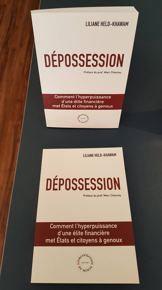 «LHK» [Liliane Held-Khawam] fut l'un des premiers «désinvités» de l'Antipresse (n° 17 du 27.3.2016). L'entretien que nous avions réalisé alors au sujet du détournement des institutions publiques et des coutumes héritées vers un nouveau modèle, transversal et transnational, de pouvoir et de «gestion» de la masse humaine avait marqué les esprits. L'éminente analyste des stratégies financières globales revient aujourd'hui avec un livre impressionnant, Dépossession (éd. Réorganisation du Monde) où elle dresse un tableau dense et argumenté du «hold-up» planétaire sur l'ensemble des moyens dont disposent les peuples et les individus.