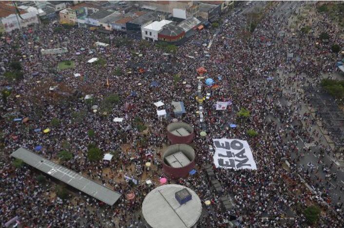 Le samedi 29 septembre 2018, soit une semaine avant les élections du Brésil, des milliers de femmes ont manifesté dans une trentaine de villes.