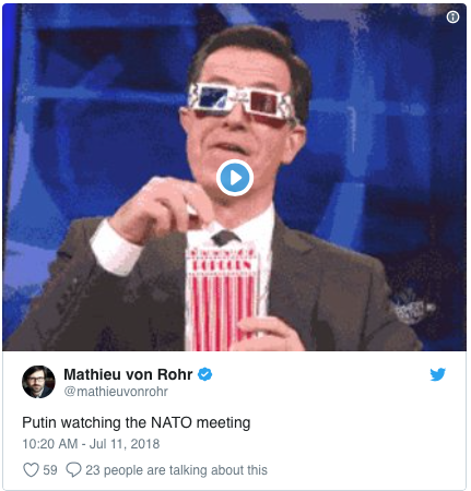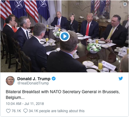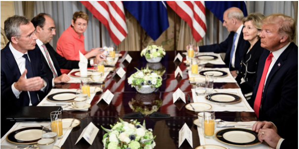 Au début de la journée, Trump s'était passé de formalités polies et avait stupéfait le leader de l'alliance en affirmant que « l'Allemagne, en ce qui me concerne, est captive de la Russie » en raison d'un nouveau gazoduc pour importer du gaz naturel russe.