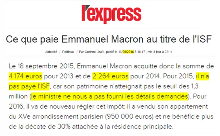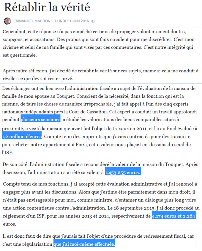 M. Macron a fini par répondre ceci sur Facebook à propos de son ISF (nous avons consacré ce billet à ce point) :