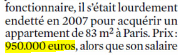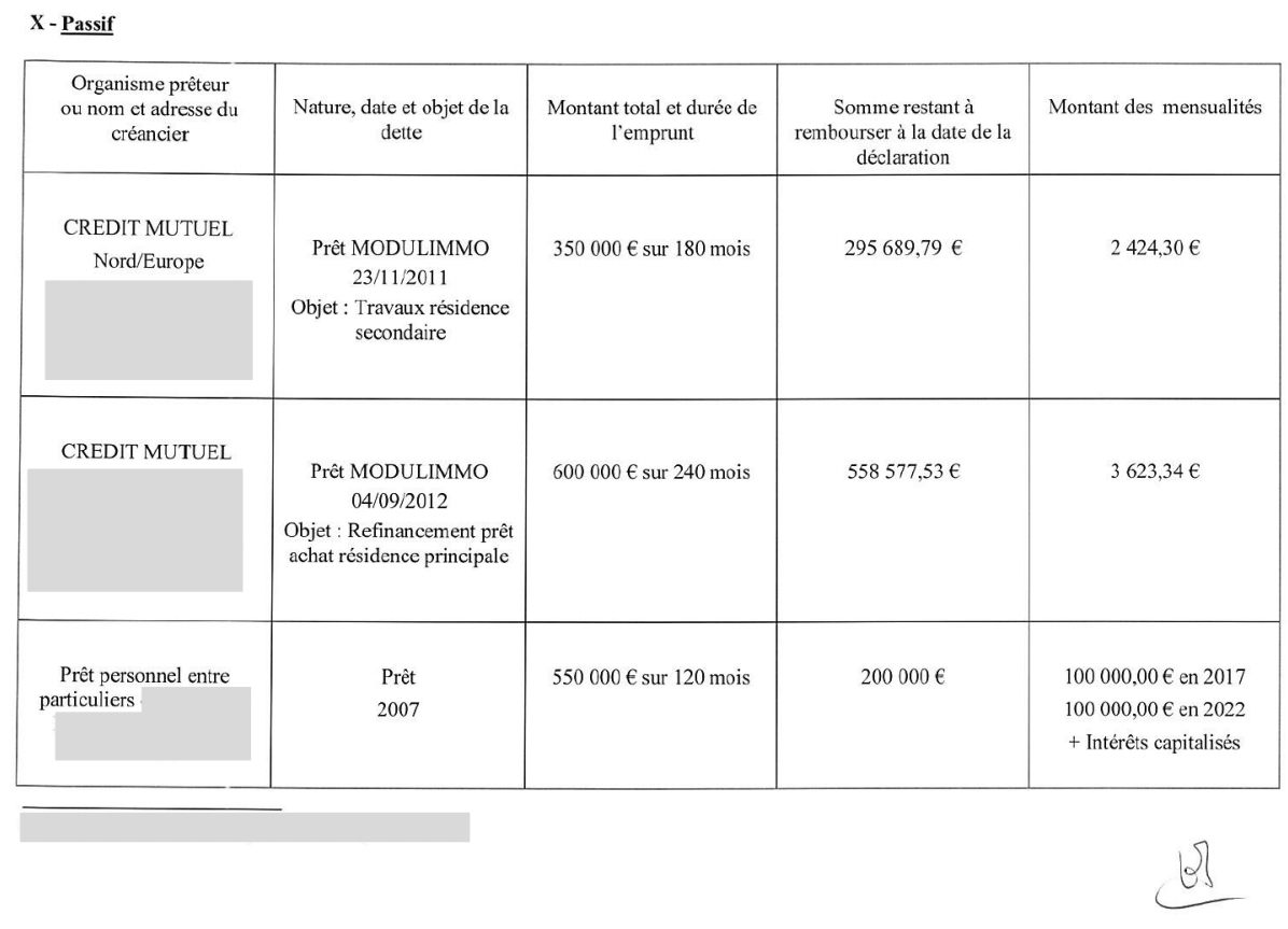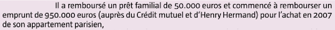 On note aussi que le JDD parle le 19/02/17 de 950 000 € de dettes + 50 000 € de prêt familial...