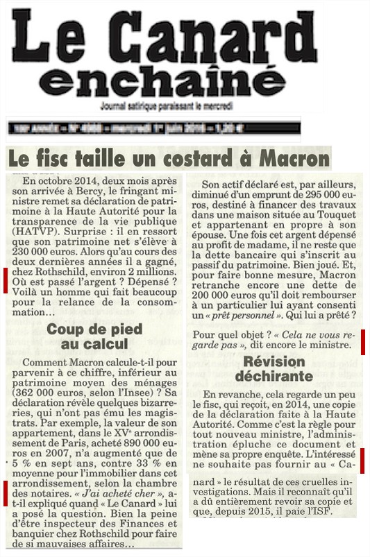 Le 1er juin 2016, le Canard Enchaîné faisait les révélations suivantes sur le patrimoine d'Emmanuel Macron ( source) :