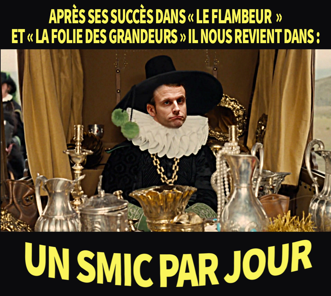 Question n°1 : M. Macron, pourquoi, surendetté comme vous l'étiez, et vu votre train de vie, avez-vous quitté un emploi à 1,5 million d'euros par an pour aller gagner "une misère" à l'Élysée ?