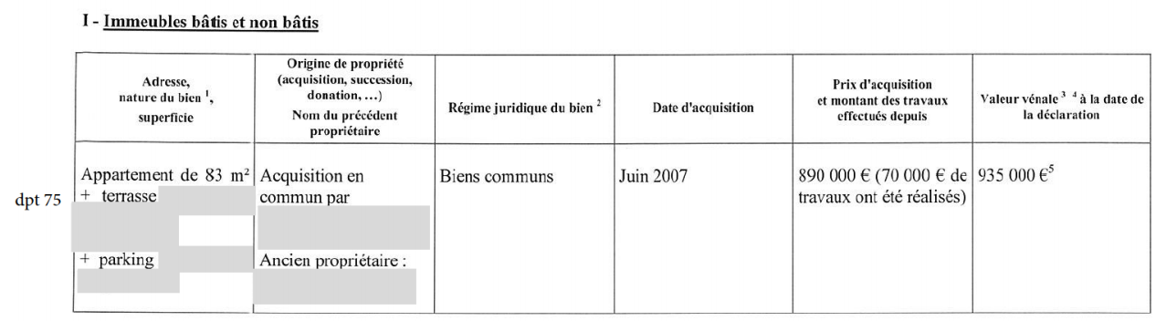 En octobre 2014, il évalue la valeur de l'appartement à 935 000 €.