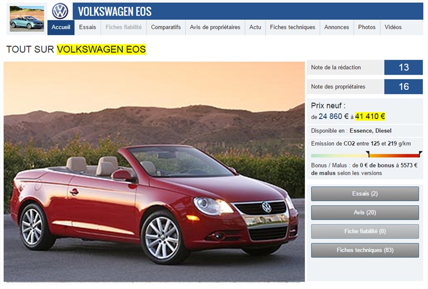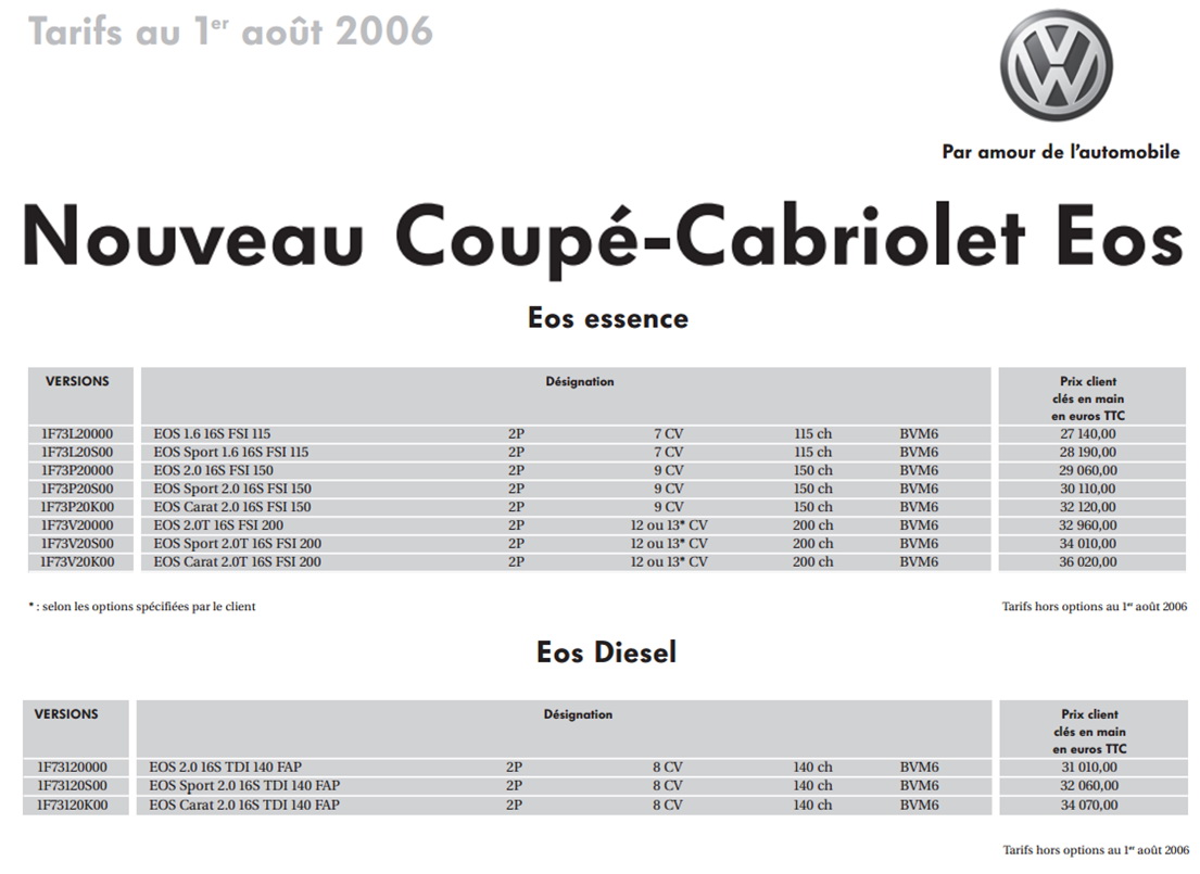 Prix maximum neuve catalogue mi-2006 (hors options, certes...) : 36 000 € (source : Catalogue Constructeur Volkswagen 08/2006)