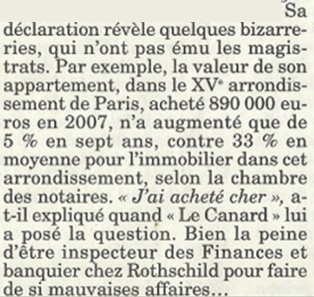 Notons qu'il a répondu au Canard Enchaîné du 01/06/2016 : "J'ai acheté cher" :