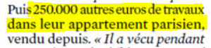 Mais en fait, ses proches indiquent dans la presse qu'il aurait fait non pas 350 000 € mais 500 000 € de travaux - ce qui semble un montant surréaliste pour une maison relativement modeste et qui n'était pas en ruine.