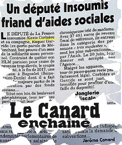 Dix-sept lieux perquisitionnés simultanément, soixante-dix policiers mobilisés et un quarteron de magistrats pour les accompagner : Jean-Luc Mélenchon et ses Insoumis ont été traités en djihadistes. JLM hurle à la forfaiture, se montre violent, pas assez mais incompréhensible. Et le flot sorti des robinets à mensonges, ceux des médias qui se rêvent dominants, le noient, le moquent, le ridiculisent, l'invectivent. Jusqu'au Canard Enchainé qui, ceci étant dit en passant, détient 128 millions de provision sur ses comptes, crie « au voleur ». Dans le couloir de la mort sont placés les Insoumis. La cible de l'hebdomadaire du mercredi est le député de ce mouvement, Alexis Corbière.