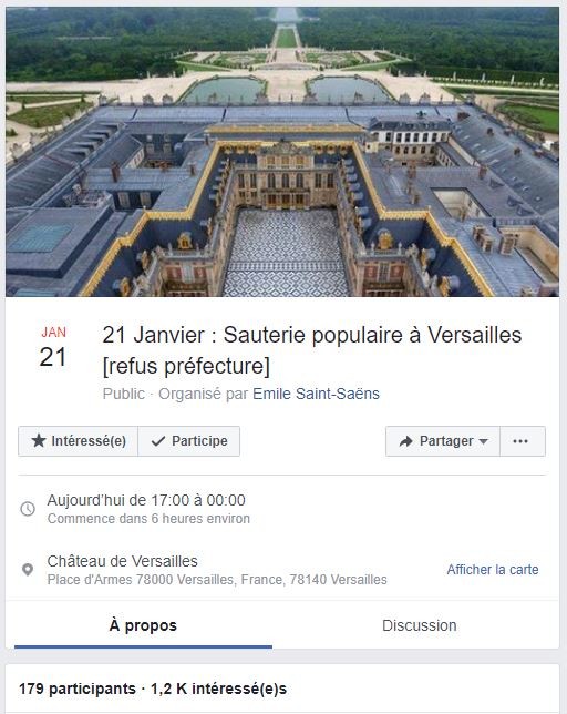 Certains Gilets jaunes ont également appelé sur Facebook à une manifestation ce 21 janvier devant le château de Versailles à partir de 17h, c'est-à-dire au moment où Emmanuel Macron doit s'y rendre.