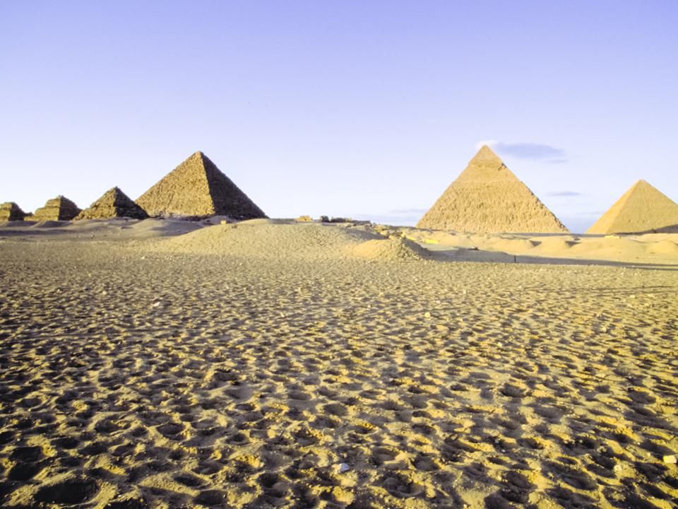 Attractions of Egypt. pyramids, camels and ruins. Big pyramids of Egypt. Photos from a trip.Getty