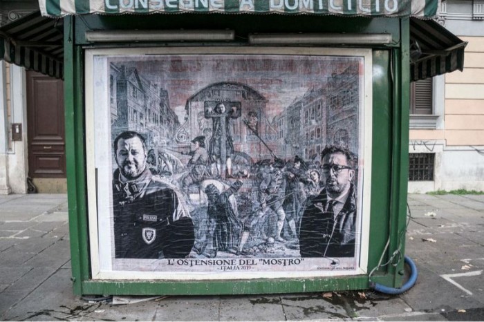 "L'ostension du monstre - Italie 2019": affiche du Collettivo Militant collée à proximité du ministère de la Justice à Rome