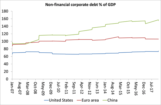Cette fois, j'imagine que le déclencheur sera l'endettement des entreprises, les entreprises étant débordées par un crédit bon marché et, à mesure que les bénéfices chutent et que les coûts d'intérêt augmentent, elles deviennent insolvables. L'économiste marxiste Eric Toussaint du CADTM est d'accord. « Cette montagne de dettes privées des entreprises sera un élément primordial de la prochaine crise financière. » Il fait remarquer que « lorsque les taux d'intérêts montent, la valeur des titres de dette des entreprises baisse. Plus ces créances (c'est-à-dire les titres de dettes émises sous forme d'obligations par les entreprises privées) représentent une part importante des actifs des entreprises, plus la chute de la valeur peut avoir un impact négatif sur la santé des créanciers ». La valeur des actions de la société diminue également et peut atteindre un point où « En 2016, Apple a fait savoir aux autorités américaines qu'une augmentation d'1 % des taux d'intérêt pourrait entraîner une perte de 4,9 milliards de dollars. D'autant que, pour financer ces achats de dettes, Apple comme les autres entreprises ont emprunté. Par exemple, en 2017, Apple a emprunté 28 milliards de dollars. Sa dette financière totale s'élève à environ 75 milliards de dollars. Par effet domino, pourrait survenir une crise d'une ampleur aussi importante que celle de 2007-2008 aux États-Unis. »