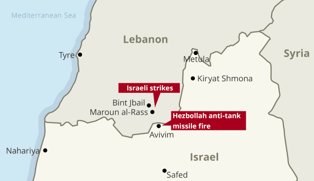 De l'autre côté de la frontière, les habitants des communautés israéliennes d'Avivim et de Yiron ont rapporté avoir entendu des explosions. Eliezer Biton, un résident d'Avivim, a déclaré à Haaretz que les échanges de tirs se poursuivaient. « La communauté est enfermée. Tout le monde est dans des abris ou des salles protégées », a-t-il déclaré en parlant depuis son abri. Il était près de la frontière, en face de Maroun al-Ras, lorsque la première frappe a eu lieu. « Nous étions prêts pour cela. Il y a eu des tensions ces derniers jours », a-t-il déclaré.