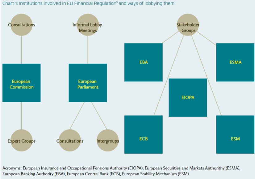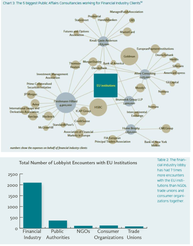 Dans le monde du lobbying, la palme revient à la haute finance internationale. A Bruxelles, par exemple, une puissante présence, organisée de manière systémique et en réseaux, infiltre les lieux (cf annexe).