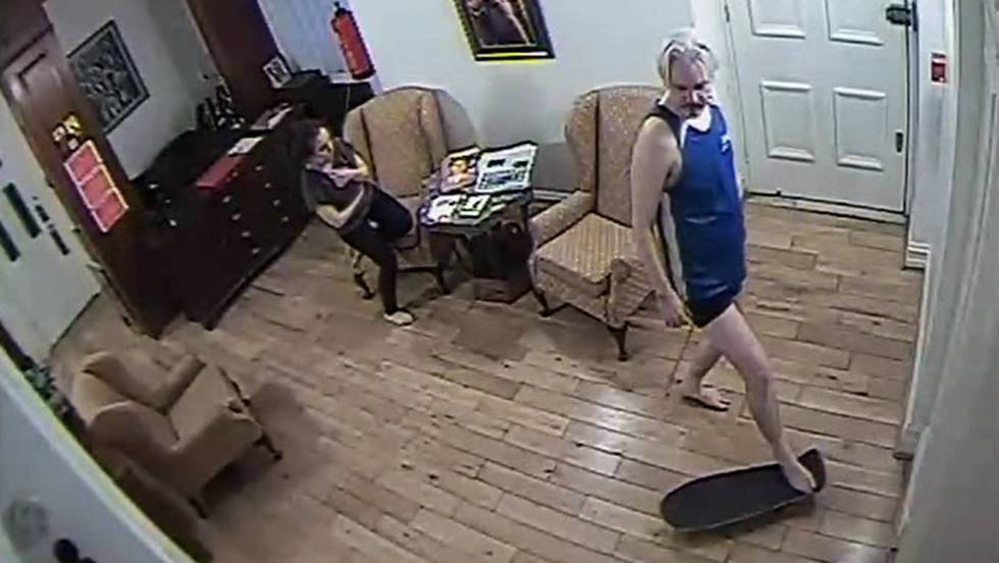 Assange dans un autre des enregistrements réalisés à l'ambassade d'Équateur à Londres.