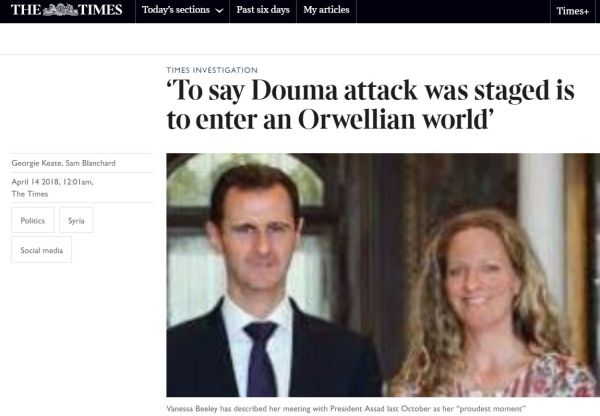 York's attacks were soon reinforced by Olivia Solon at The Guardian, The UK's Timesnewspaper, former Guardian correspondent, Brian*Whit/vanessa-beeley-the-syrian-conflicts-goddess-of-propaganda-2c84f850dba4_0_165434');"> Brian_Whit/vanessa-beeley-the-syrian-conflicts-goddess-of-propaganda-2c84f850dba4">Brian Whitaker, Bellingcat, the BBC, journalist Nafeez Ahmed, academic Idrees Ahmad, and a 48-page report from the White Helmet PR agency, Syria Campaign.